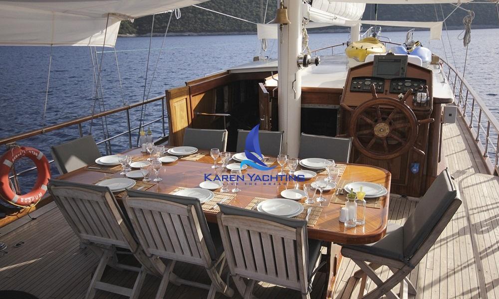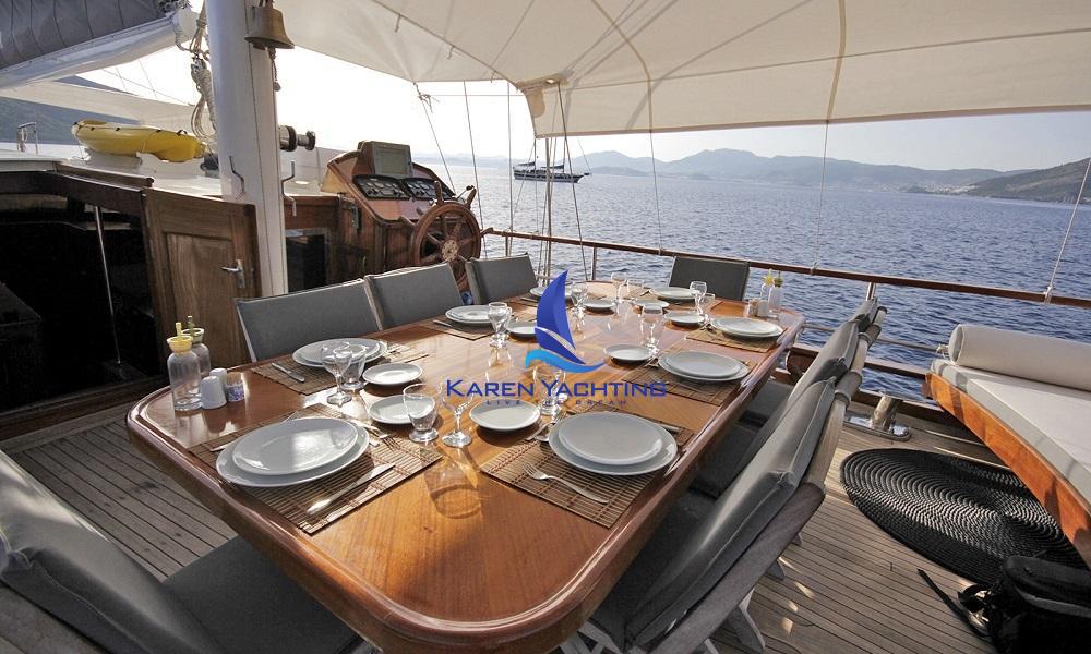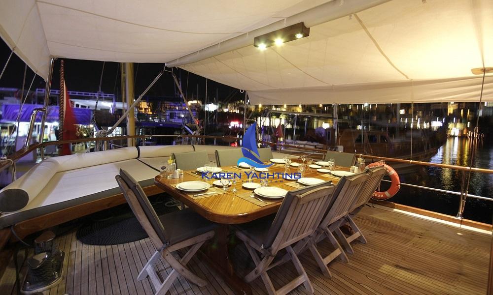 Die Gulet Sebahat Sultan wurde im Jahr 2008 gebaut. Dieses 23,9 m lange und 5,60 m breite Boot bietet unseren geschätzten Gästen einen Blue Cruise Service mit einer Crew von 3 Personen.