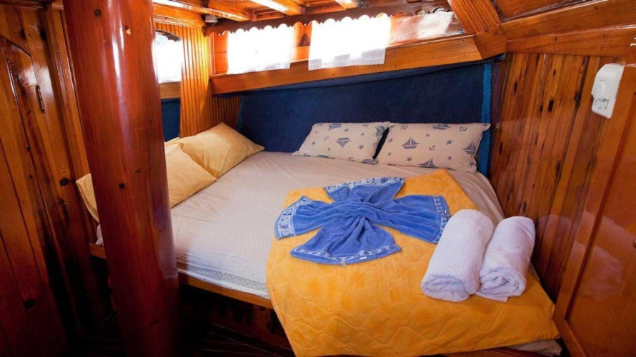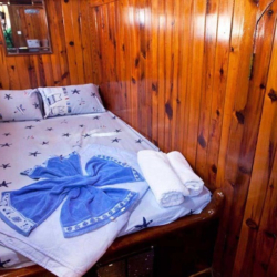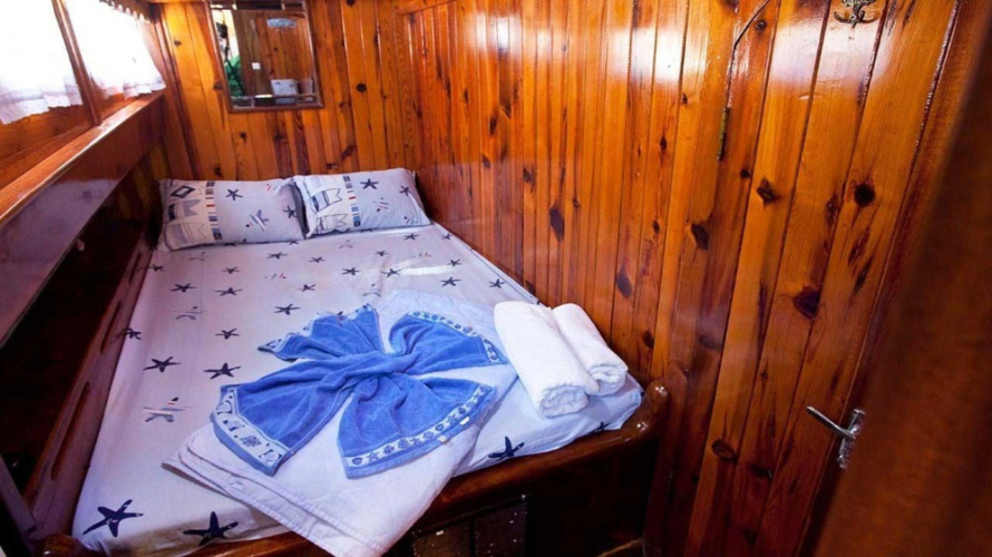 3 Double Kabin: Tüm kabinlerde klima, duş, WC, banyo ve el havluları yer alır. Günlük 4 saat klima kullanımı mümkündür.