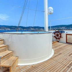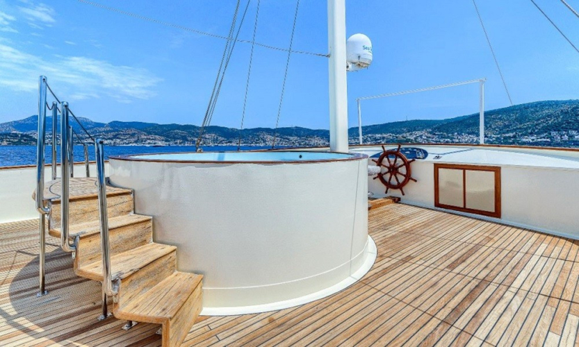 • Flybridge Jakuzi: Geniş üst güverte, dinlenme ve eğlence alanı