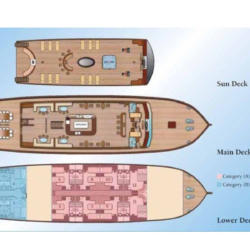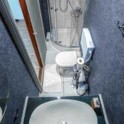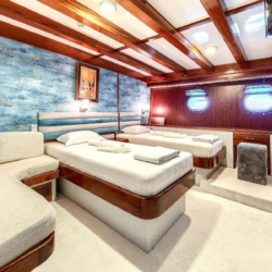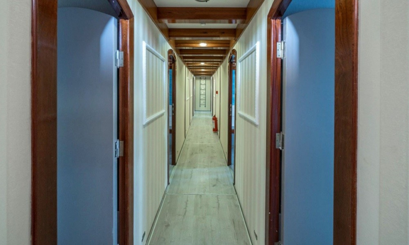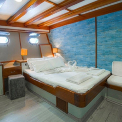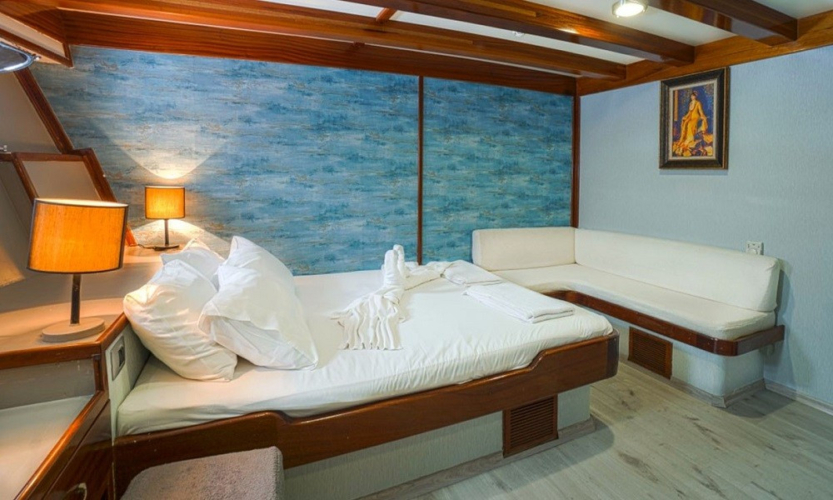 6 double ve 6 twin kabin ile hem çiftler hem de bireysel konaklamalar için uygundur. Tüm kabinlerde klima, duşlu banyo, saç kurutma makinesi ve havlu setleri mevcuttur. Salonda TV, müzik sistemi, yemek ve oturma alanı bulunmaktadır.