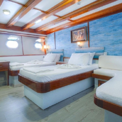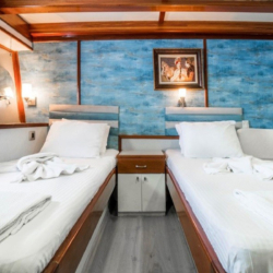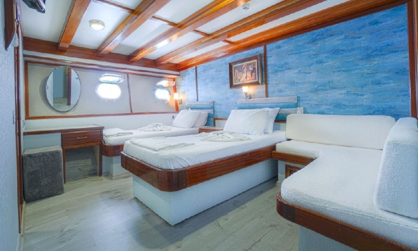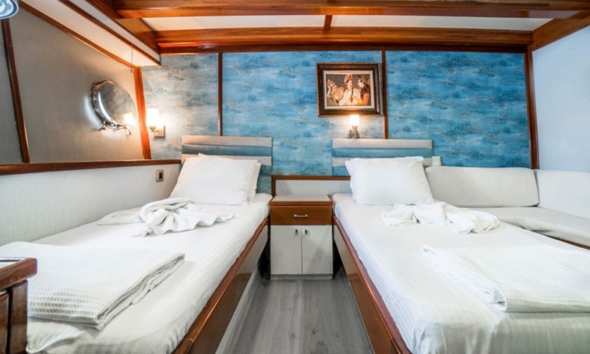 • 12 Kabin: 6 double, 6 twin – 24 kişilik kapasite