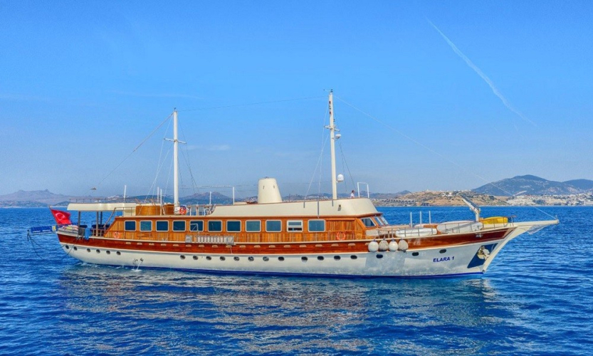 42 metre uzunluğundaki Elara 1 Gulet, 12 kabini ve 24 kişilik kapasitesiyle kalabalık gruplar için özel tasarlanmış bir mavi tur teknesidir. Jakuzili geniş flybridge alanı, modern iç donanımı ve profesyonel mürettebatıyla konforlu ve keyifli bir tatil sunar.
