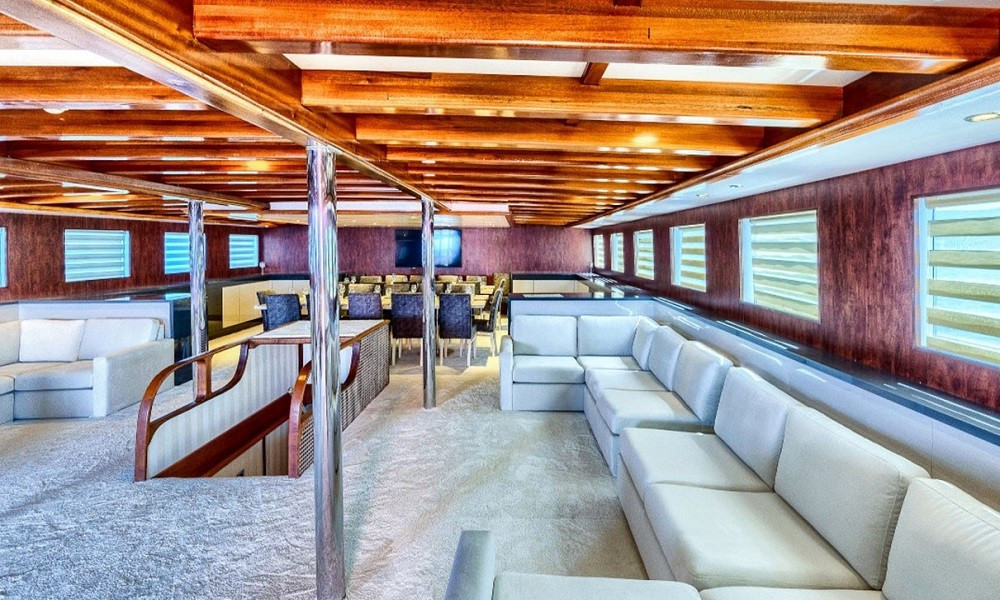 Tik kaplı güvertede ön ve arka oturma alanları, güneşlenme alanları, jakuzili flybridge, yemek masası ve denize iniş merdiveni ile her anınız keyif dolu geçer.