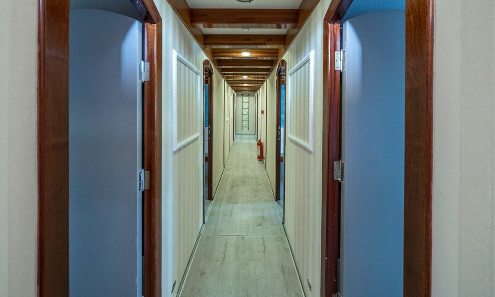 6 double ve 6 twin kabin ile hem çiftler hem de bireysel konaklamalar için uygundur. Tüm kabinlerde klima, duşlu banyo, saç kurutma makinesi ve havlu setleri mevcuttur. Salonda TV, müzik sistemi, yemek ve oturma alanı bulunmaktadır.