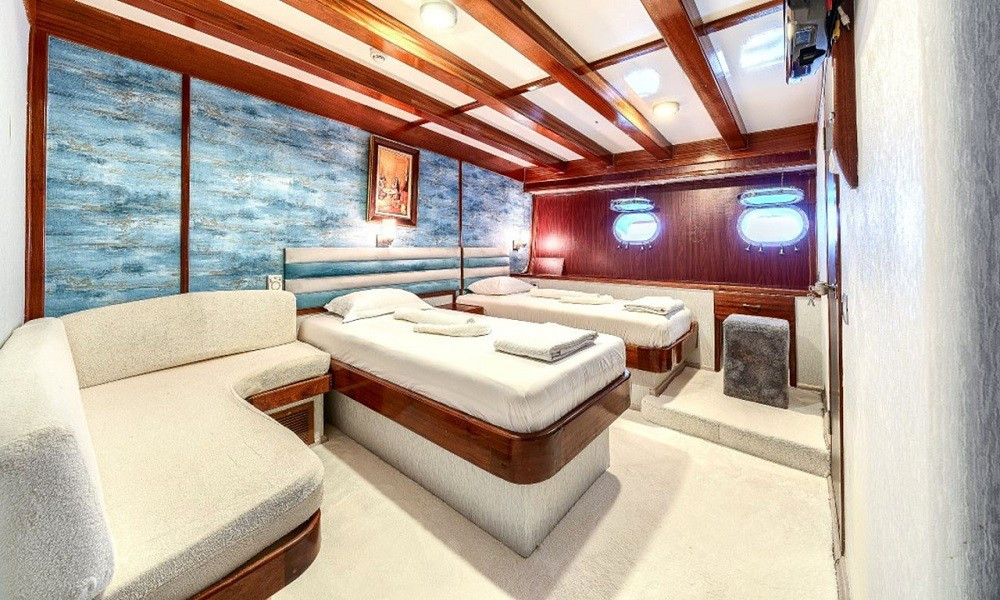 • 12 Kabin: 6 double, 6 twin – 24 kişilik kapasite