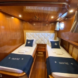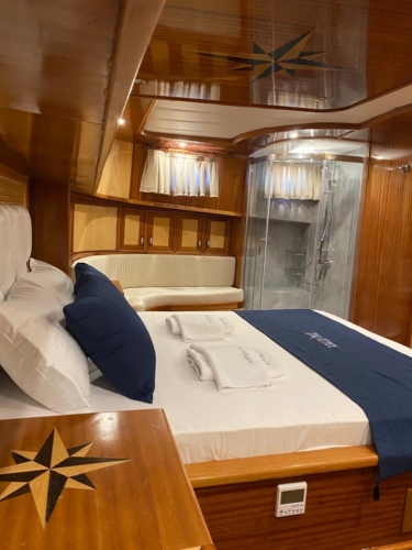 - Kabinde Konfor: Her kabin özel duş ve WC ile donatılmış olup, modern tasarımıyla rahat bir konaklama sunar. Klima sistemi sayesinde yazın sıcak günlerinde serin bir ortamda dinlenebilirsiniz.