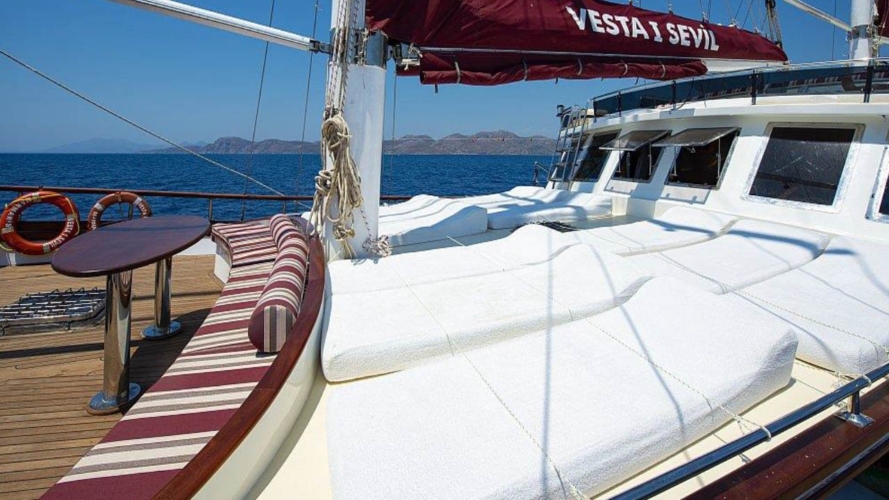 Vesta 1 Sevil guleti 2004 yılında inşa edilmiştir. 2012 yılında geçirdiği renovasyonla beraber günümüzdeki son halini almıştır. 32 m boy ve 7 m ene sahip tekne 4 personeli ile siz değerli misafirlerimize mavi tur hizmeti vermektedir.
