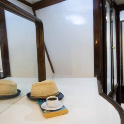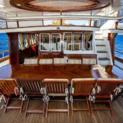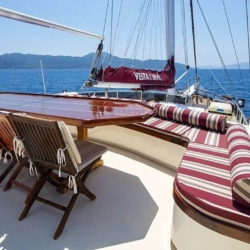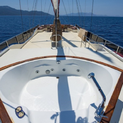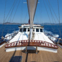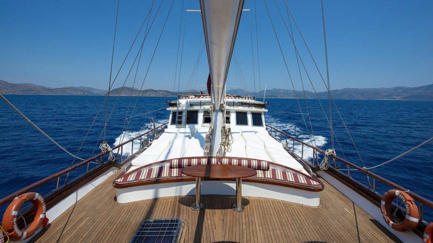 Tüm misafirlere yetecek miktarda güneşlenme minderleri, sandalye ve servis takımları mevcuttur. Mavi Yolculuk misafirlerimize konforu, lüksü ve huzuru bir arada yaşatan bu yatımız 12 deniz miline erişmektedir.